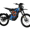 60V and more than 6kW of peak power from a removable Panasonic Lithium ion battery pack. Forged light weight alloy frame combined with hi-spec components, total weight just 47kg. 4 Piston Hydraulic Disc Brakes Front and Rear. LCD dash with USB charger point. Aimed at youth to adult, with a climbing ability of over 45° it offers hours of near silent fun with a range of 20 to 60 miles per charge, depending on mode. Top speed 45 mph +, Fast Re Charge 2.5 to 3.5 hours.